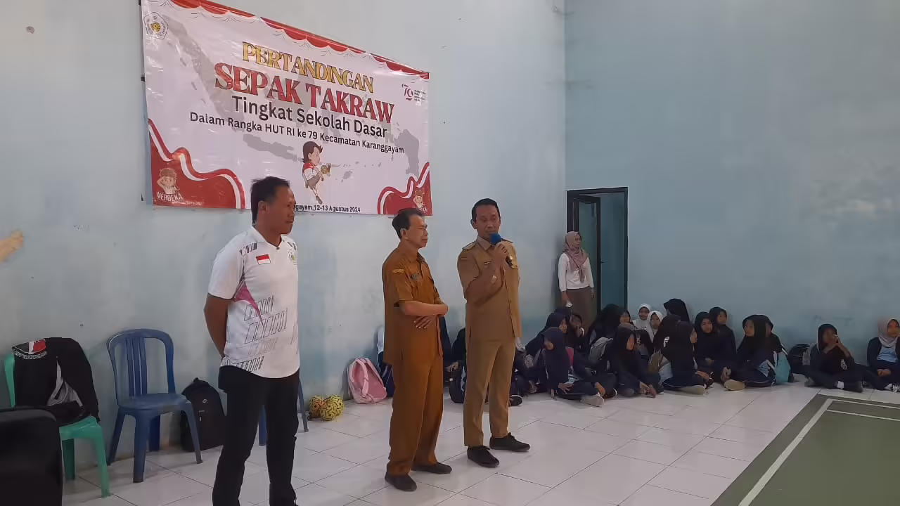 ” Untuk itulah kami dari Forkompincam Karanggayam untuk menggairahkan serta menyemarakkan sepak takraw juga memeriahkan HUT RI ke-79 menggelar kejuaraan / turnamen sepak takraw usia dini agar bibit – bibit sepak takraw tumbuh bagus dan sepak takraw semakin bagus”, ujar Camat Karanggayam.