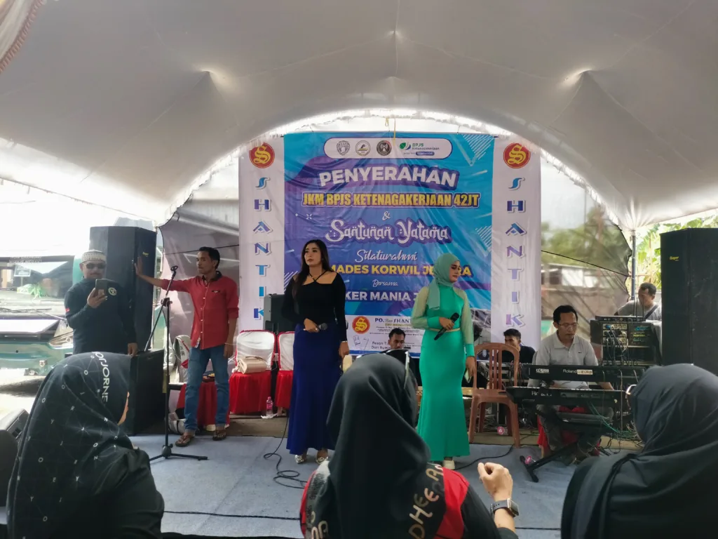 Selanjutnya acara berbagi kasih dan Penyerahan santunan Jaminan Kematian (JKM) BPJS Ketenagakerjaan dan anak yatim piatu (YATAMA) di tutup dengan doa oleh Ustaz Nur Rohmad dan dilanjutkan hiburan musik.