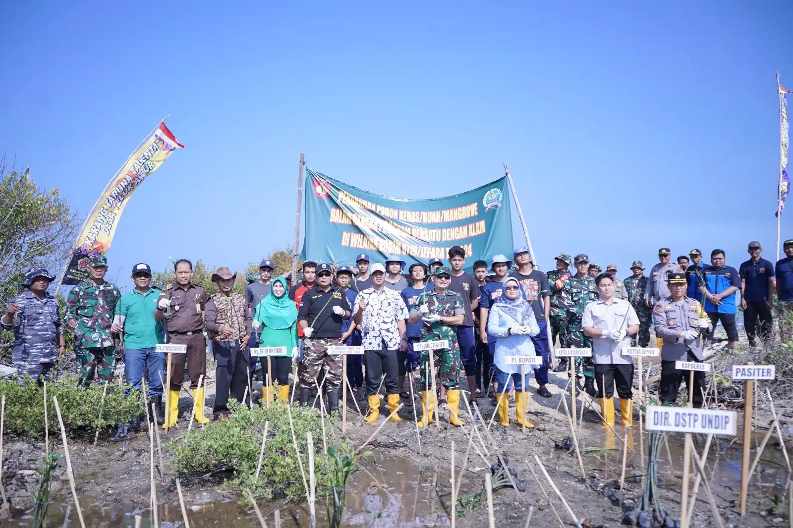 Penanaman bibit Mangrove ini dalam rangka memperingati HUT TNI yang ke – 79 yang bertempat di pesisir Pantai Teluk Awur Kecamatan Tahunan kabupaten Jepara, Sabtu (28/9/2024)