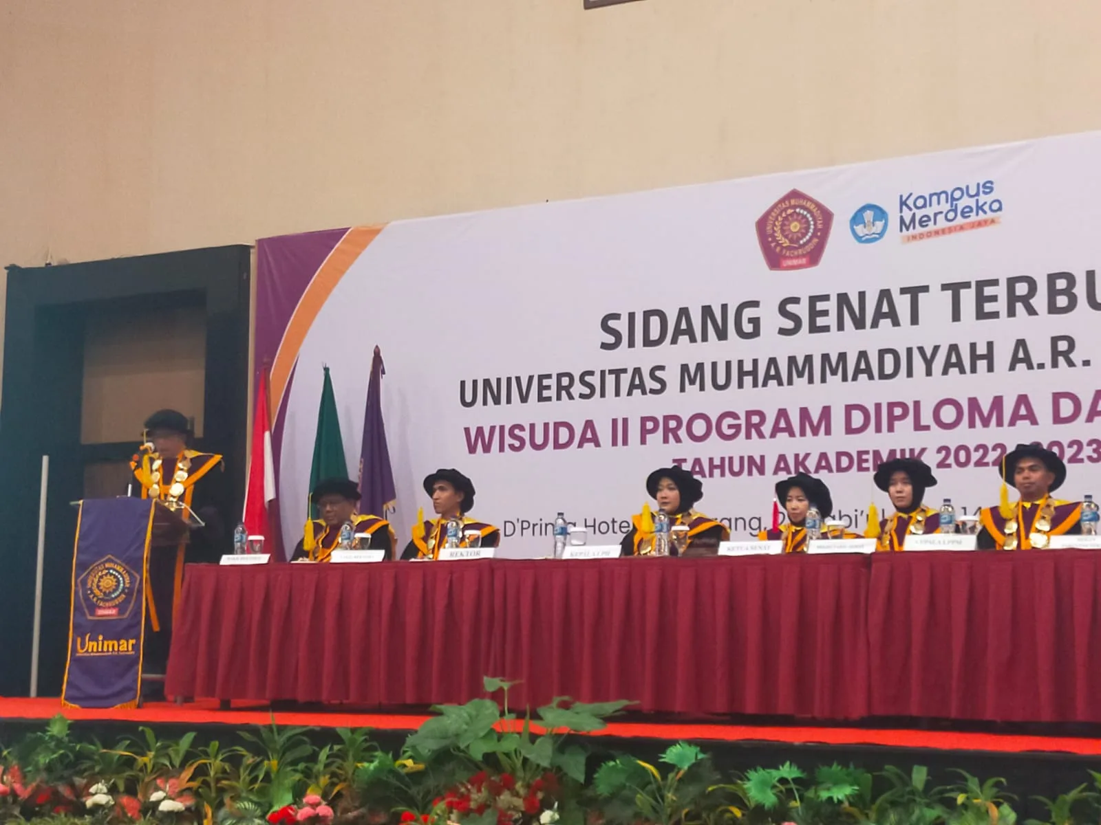 TANGERANG, – Universitas Muhammadiyah A.R. Fachruddin (Unimar) telah sukses merayakan kelulusan mahasiswanya dalam wisuda angkatan ke-2. Acara wisuda ini di hadiri oleh 165 Wisudawan dari Fakultas Teknik dan Fakultas Farmasi. Acara berlangsung dengan khidmat di D’primahotel Tangerang pada Minggu, 8 Oktober 2023.